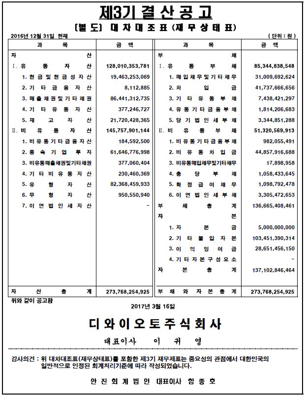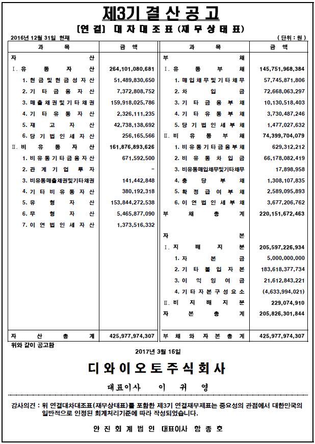 제3기 대차대조표(별도 및 연결) 공고