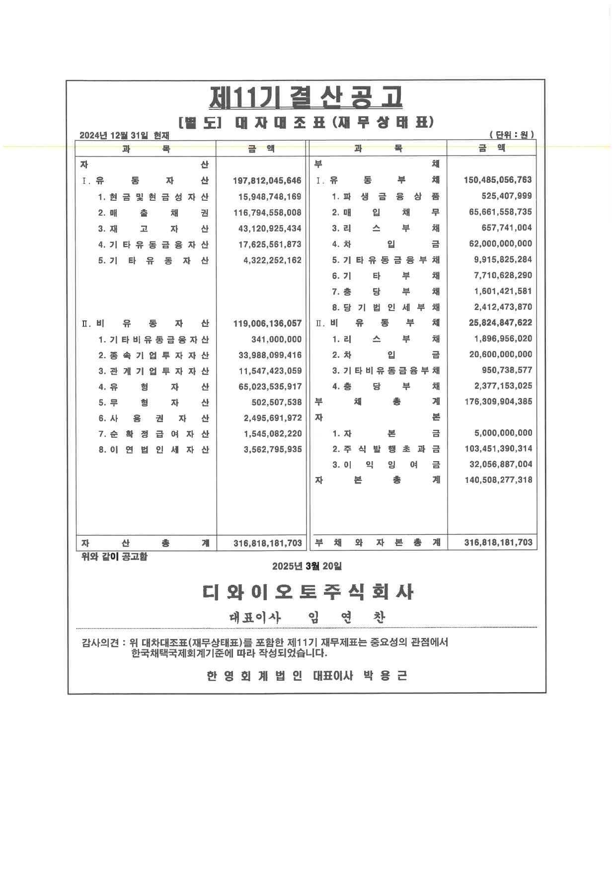 제11기 대차대조표 공고