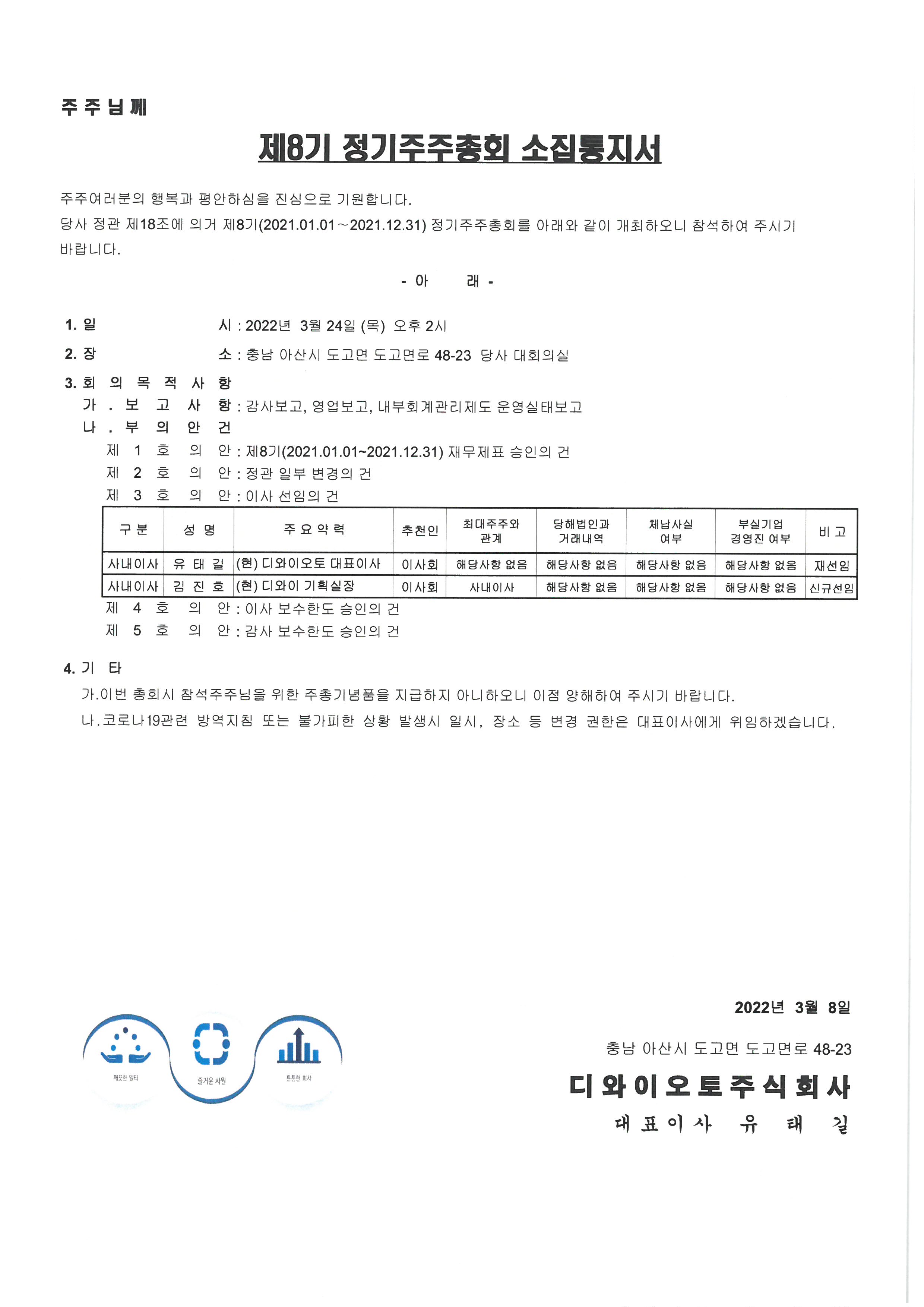 제8기 정기주주총회 소집공고