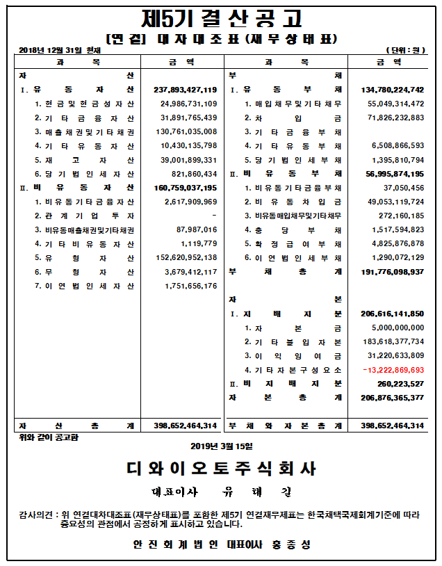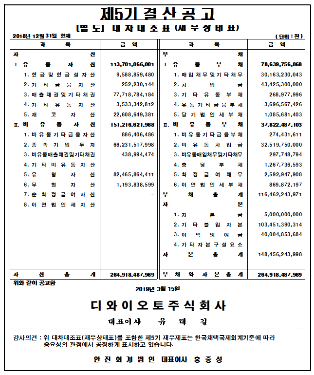 제5기 대차대조표(별도 및 연결) 공고
